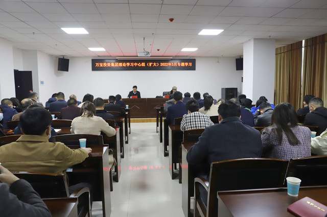 3月4日,萬(wàn)寶投資集團(tuán)舉行理論學(xué)習(xí)中心(擴(kuò)大)2022年3月專(zhuān)題學(xué)習(xí)和研討。董事長(zhǎng)梁養(yǎng)賢主持會(huì)議并講話,總經(jīng)理徐業(yè)波、監(jiān)事會(huì)主席伍岳、副總經(jīng)理謝緯及各部門(mén)、子公司全體人員參加。會(huì)議特邀市委黨校教授穰貽輝授課。