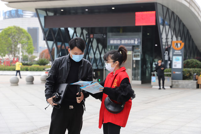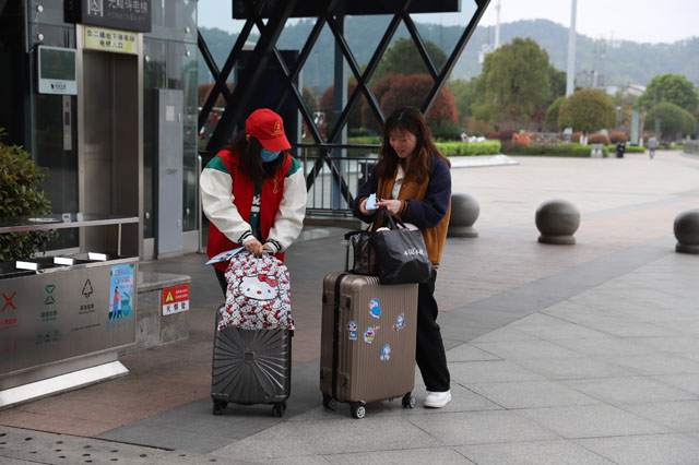 志愿者身穿紅馬甲,通過規(guī)范的手勢(shì)、禮貌的語言,主動(dòng)為旅客搬運(yùn)行李,宣傳疫情防控知識(shí),幫助旅客購票退票,引導(dǎo)旅客文明出行,用實(shí)際行動(dòng)詮釋志愿服務(wù)精神,成為高鐵南站一道靚麗的風(fēng)景線。