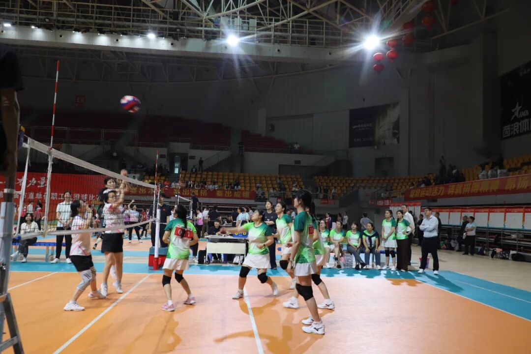 賽場上,參賽隊員們斗志昂揚。在男子組比賽中,隊員們配合默契,發(fā)球、傳球、扣球一氣呵成,每一次精彩的攻防都彰顯著他們的競技實力與團隊凝聚力。女子組隊員們也毫不遜色,她們精準傳球、果斷扣殺,在賽場上展現出堅韌不拔的競技風采,每一次奮力起跳、每一回頑強撲救,都將市萬寶投集團員工的拼搏精神詮釋得淋漓盡致。