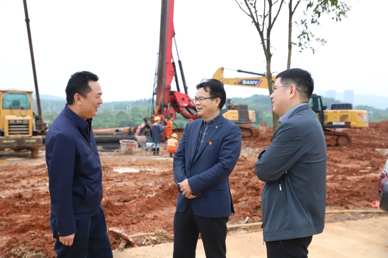 萬寶投資集團董事長梁養(yǎng)賢(中)、總經(jīng)理徐業(yè)波(右),與項目所在地婁星區(qū)萬寶鎮(zhèn)負責人現(xiàn)場溝通對接