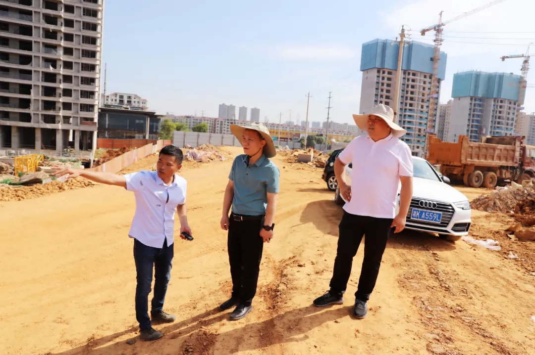 萬寶投資集團黨委委員、紀委書記葛旭華(中)在湘中大道與天華路東南角場平工程項目現(xiàn)場督查
